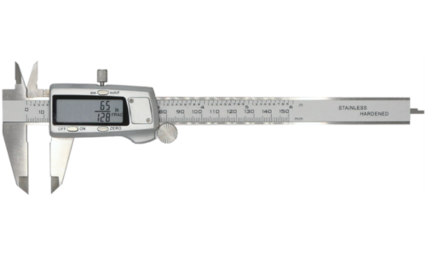 Vernier Calipers w/ Fractions, 150mm (6")(0) No Reviews yet $131.00 Quantity discounts available QuantityPrice SKU: MT220150 This item is IN STOCK Quantity -+ Add to Cart Details Overview: Manual On / Off or auto power off. Features fraction measuring system with conversion at any position to decimal inches (0.0005") and metric... Details Back DetailsOverview: Manual On / Off or auto power off. Features fraction measuring system with conversion at any position to decimal inches (0.0005") and metric (0.01mm) readings.Made from stainless steel and supplied in a storage case. Reviews 0 Back Ratings & ReviewsNo reviews availableBe the first to Write a Review