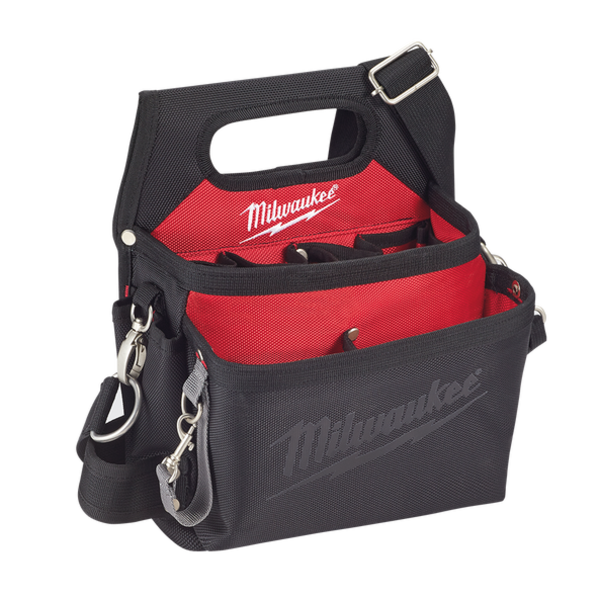 MILWAUKEE Work Gear is Nothing But Heavy Duty. Designed with professional tradesmen in mind and Built with 1680 Denier Nylon, riveted seams, and all metal hardware, MILWAUKEE work gear is extremely durable and provides users with unmatched comfort and organization. The Electricians Work Pouch provides users with 15 pockets to organize their tools and incorporates a solid base that allows the bag to remain upright when set on a flat surface. The integrated handle allows the bag to be easily transported from and task to task and the metal tape measure clip securely stores a tape measure for easy access. A plastic lined puncture-resistant pocket allows users to store sharp objects, such as jab saws, without worry of damaging their bags. This combination of extreme durability and functionality confirms MILWAUKEE’s commitment to providing innovative, durable solutions to heavy duty tradespeople.