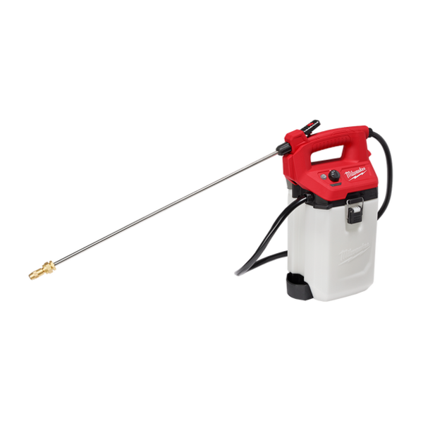 The M12™ 7 Litre Handheld Chemical Sprayer provides users with an interchangeable tank design with no manual pumping. Designed to meet the needs of the landscape maintenance professional, the battery-powered handheld sprayer delivers instant, constant and adjustable pressure, up to 80 PSI, with up to 5.0 metre vertical spray distance. The 3-speed pressure adjustment knob adjusts the pressure between 20 – 80 PSI for ultimate user control across a range of spraying applications. When paired with an M12™ REDLITHIUM™ 2.0Ah Battery (sold separately), the chemical sprayer provides users with up to 300 litres of spray delivery per charge. The M12™ Powered Sprayer Head is compatible with both 4 Litre (49162761) and 7 Litre (49162762) Chemical Sprayer Tanks, providing the ability to choose the right size the tank for the application at hand, and premix multiple tanks to maximise productivity. The Handheld Chemical Sprayer can be used either one- or two-handed for added versatility. The sprayer features an onboard measuring cup for quick chemical measurement, a strainer that filters debris from entering the tank, and vertical and horizontal wand storage. With a dual diaphragm pump for increased durability and maximum pump life, the M12™ 7 Litre Handheld Chemical Sprayer provides instant, constant pressure while reducing fatigue associated with manual pumping.