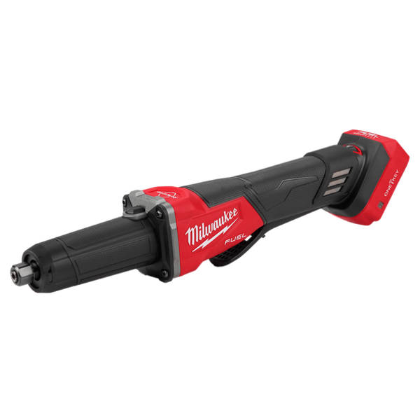 The M18 FUEL™ 1/4" ONE-KEY™ Braking Die Grinder with Deadman Paddle Switch delivers user demanded runtime with the ability to deburr up to 35 pipes on a M18B5. Milwaukee's cordless Die Grinder offers variable speeds from 8,000 - 20,000 RPM to provide users the precision and power needed in key applications. Equipped with RAPIDSTOP™ technology that provides braking in under 2 seconds, the M18 FUEL™ 1/4" ONE-KEY™ Braking Die Grinder with Deadman Paddle Switch gives users enhanced safety, while maximising productivity. Compatible with ONE-KEY™, the die grinder wirelessly connects to a smart phone to track and manage the tool, providing users with visibility to where tools are across their network of jobs. The POWERSTATE™ brushless motor delivers up to 20,000 RPM to allow users to maintain grinding power while in tight spaces. The cordless tool delivers up to 55mm cutting and 76mm sanding accessory compatibility for material removal and surface prep applications, and an LED worklight to enhance visibility. Milwaukee's die grinder features REDLINK PLUS™ Intelligence, an advanced system of cordless power tool electronics for maximum performance and long tool life.