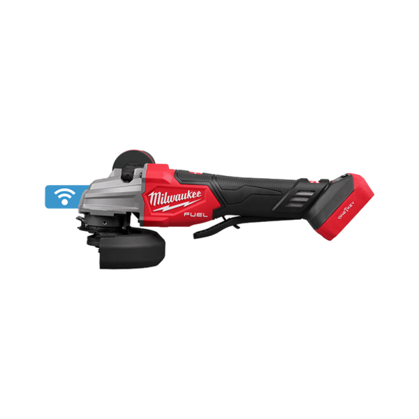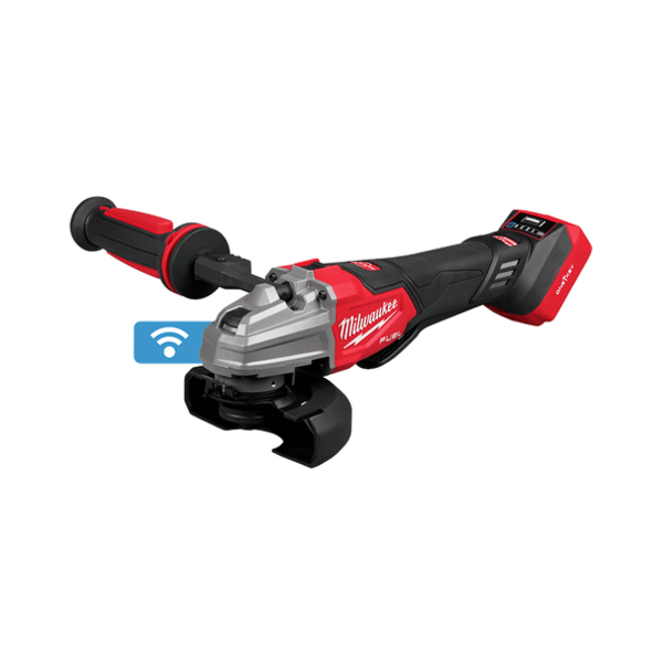 The M18 FUEL™ ONE-KEY™ 125mm (5") Dual-Trigger Braking Grinder is the next advancement in angle grinders, providing greater control through dual-trigger activation, permanent side handle, and AUTOSTOP™ kickback control. The M18 FUEL™ ONE-KEY™ 125mm (5") Dual-Trigger Braking Grinder’s dual-trigger activation requires two hands for operation. The permanent side handle provides 15 positions, improving control and accessibility. For the first time on a MILWAUKEE® Grinder, AUTOSTOP™ kickback control helps prevent severe kickback, while RAPIDSTOP™ braking stops most accessories in under 1 second. With a 4-mode variable speed, this grinder delivers greater control in a variety of materials. Compatible with ONE-KEY™, this grinder wirelessly connects to a smartphone to track and manage the tool, providing users with visibility to where tools are across their network of jobs. The POWERSTATE™ Brushless Motor generates maximum power allowing you to complete tough grinding and cutting applications.