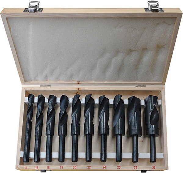 10 Piece Reduced Shank Drill Bit Set 14 - 32mm(0) No Reviews yet $219.00 Quantity discounts available QuantityPrice SKU: DB1100 This item is ON BACKORDER Quantity -+ Add to Cart Details This set is suitable for drilling larger holes into wood, plastics and some soft metals. Reduced 1/2" shank Bits: 14, 16, 18, 19, 20, 22, 24, 25, 29 a... Details Back DetailsThis set is suitable for drilling larger holes into wood, plastics and some soft metals.Reduced 1/2" shankBits: 14, 16, 18, 19, 20, 22, 24, 25, 29 and 32mmDrill depth: 90mmOverall length: 6" (150mm)In wooden box Reviews 0 Back Ratings & ReviewsNo reviews availableBe the first to Write a Review