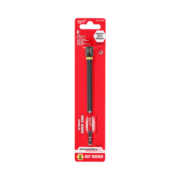 The SHOCKWAVE™ Power Bit Magnetic Nut Driver are engineered with a durable magnet to stand up to heavy duty applications throughout the life of the nut driver. The magnetic nut driver securely holds screws during application set-up providing unyielding bit engagement. Made from heat treated CUSTOM ALLOY76™ steel to control hardness for extended bit life. The optimized SHOCK ZONE absorbs peak torque and prevents bit breakage. The magnetic nut drivers feature a chamfered edge for maximum screw-head engagement while the improved hex geometry allows for the best fit and reduced stripping during use. The nut drivers also feature color-coded bands that aid with selecting the right diameter. Designed for use with impact drivers and drill drivers.