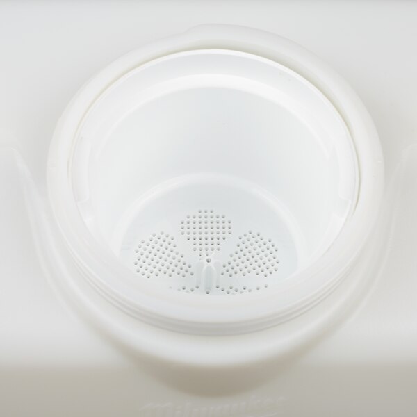 - Wide mouth opening and strainer for easy, debris-free pouring